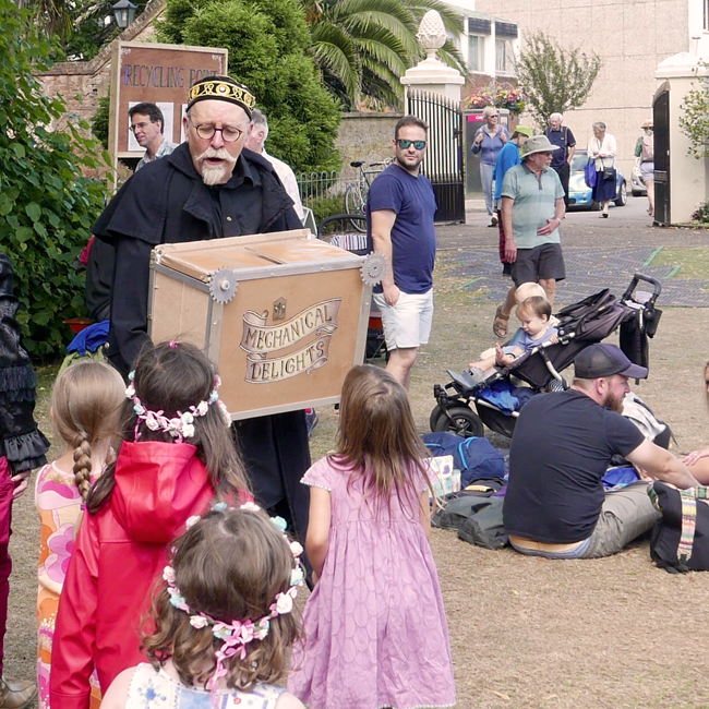 Stand back and be amazed as Professor Cog and Miss Sprocket amaze you with the weird and wonderful walkabout Box of Mechanical Delights, as it creaks and cranks its automata nonsense!